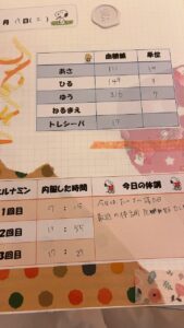 今回はトレシーバを打ったかわからないのかが原因かはわかりませんが、今後こんなことになることを減らそうとhiromiさんにアドバイスをもらって、毎日記録を付けてみようよという提案でこの自分ノートを作ろうということになりました。