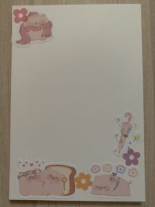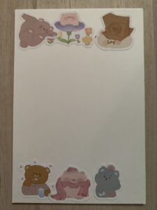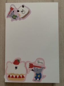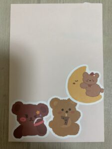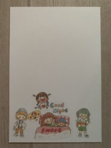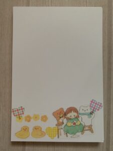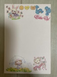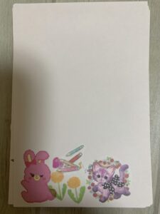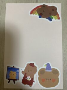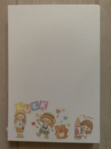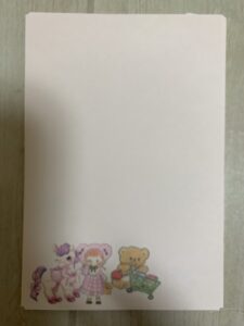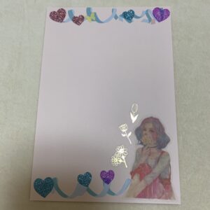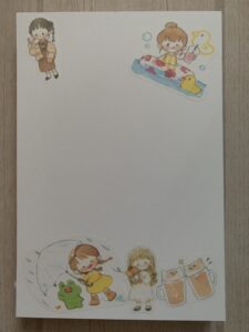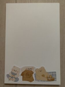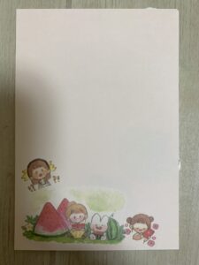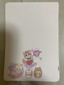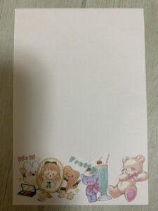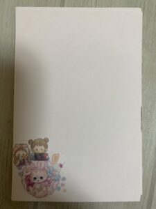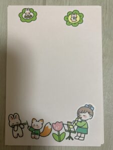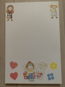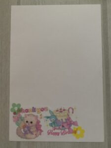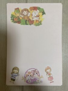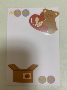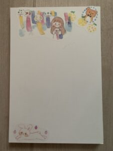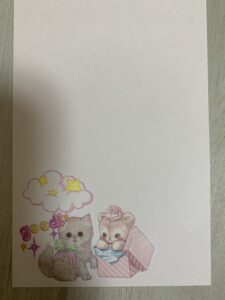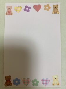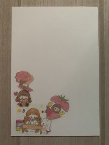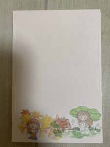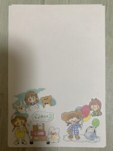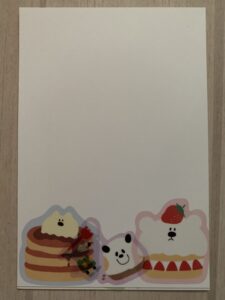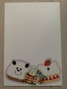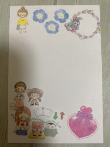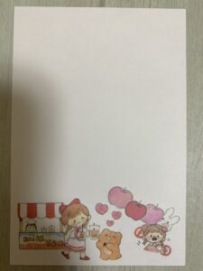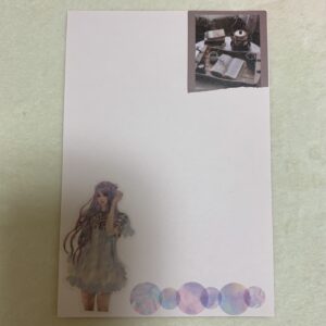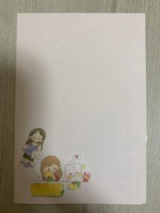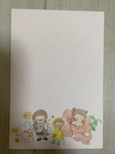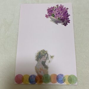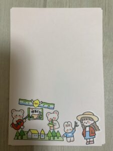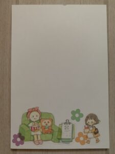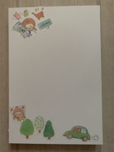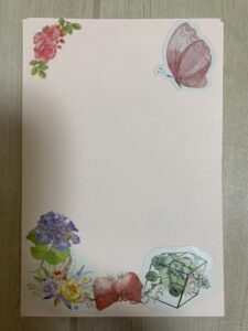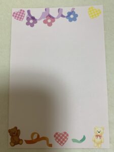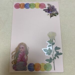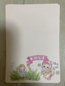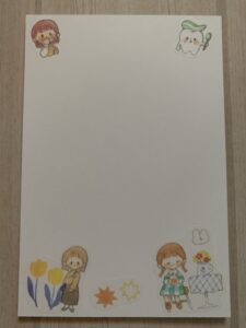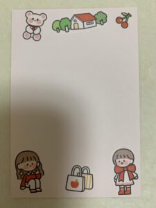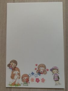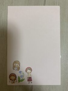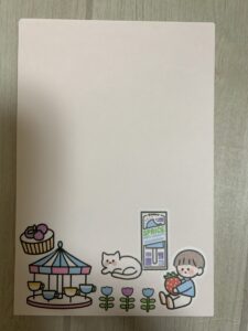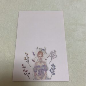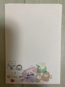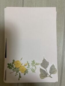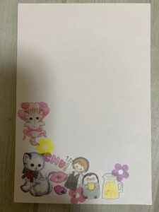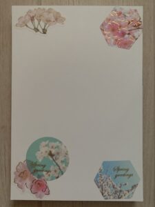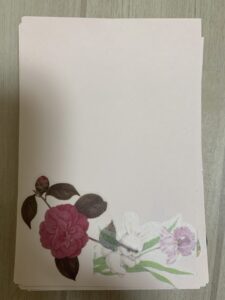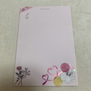 | 1 | 文字を沢山書きたいので、もう少し書けるスペースの物があるといいなと思いました。葉書の色は落ち着いた色合いでした。 |