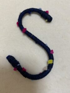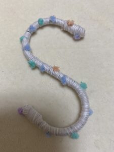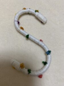 引っかけたもののすべり止めにもなると思います。細い毛糸を巻き付けてあります。