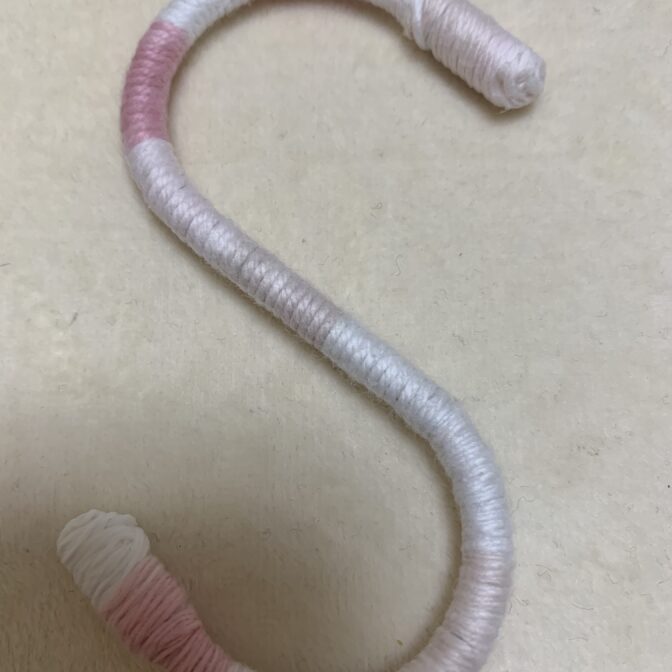 引っかけたもののすべり止めにもなると思います。細い毛糸を巻き付けてあります。